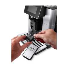 Envase de 500 g de frijoles Preparación de 2 cafés al mismo tiempo 2 bloques térmicos: garantía de una temperatura constante Infusor extraíble con capacidad variable (7 a 15gr) Preinfusión de café molido Cantidad ajustable de café y agua. Tapa de sabor para el contenedor de frijoles Capacidad del depósito de posos de café: 14 tazas |
