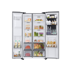 El refrigerador Samsung Side by Side RH68B8820S9 es un refrigerador americano-americano con frío ventilado que asegura una temperatura constante. Se beneficia de la tecnología "Twin Cooling" que gestiona de forma independiente el refrigerador y el congelador para un nivel de humedad perfecto. Este refrigerador está equipado con un dispensador de agua, cubitos de hielo y hielo picado para refrescarse en cualquier momento del día.