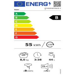 | Consumo de energía para 100 ciclos de lavado |